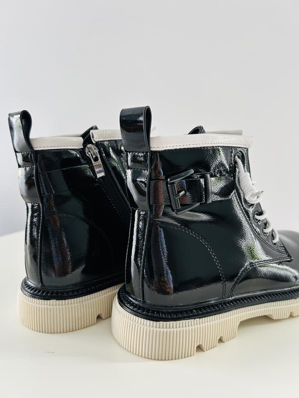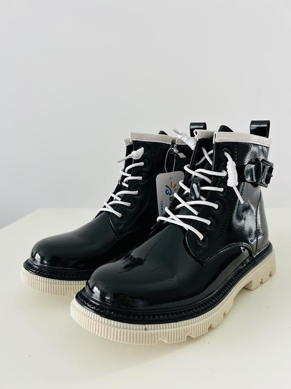 Матеріал верху: штучний лакМатеріал підкладки: флісМатеріал підошви: ПВХВисота платформи: 2 смВисота каблука: 3 смДод.опис: змійкаКолір: чорний