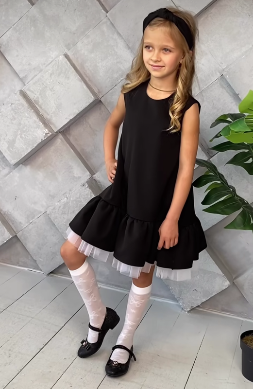 Шкільний сарафан, шкільна форма сарафан з воланами і білим мереживом