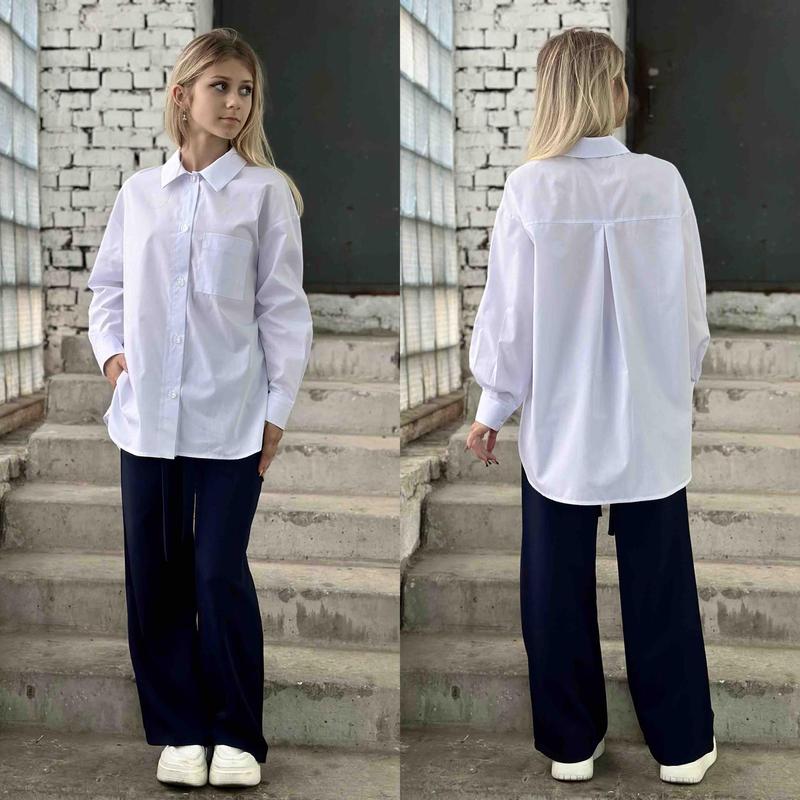 Стильна біла сорочка оверсайз для дівчаток. - Тканина — котон сорочковий - Модель із подовженою спинкою. - Чудовий варіант для створення стильного шкільного образу! - Розміри 34,36,38,40,42. - 34 (рост 134-140), 36 ( рост 140-146), 38( рост 146-152), 40 (рост 152-155), 42( рост 155-160). - Пересилання: Нова пошта Весь асортимент одягу для школи: ****************************************** Весь асортимент магазину: ************************** Ваші відгуки: ##