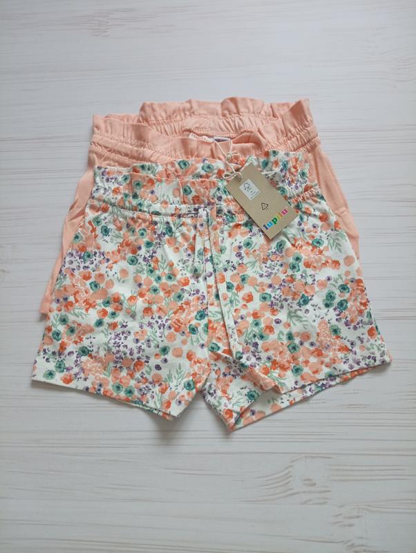 Набір бавовняних шортиків для дівчинки. Розмір подвійний 110/116, повномірні, пояс регулюється.Продаються тільки набором, ціна вказана за набір.