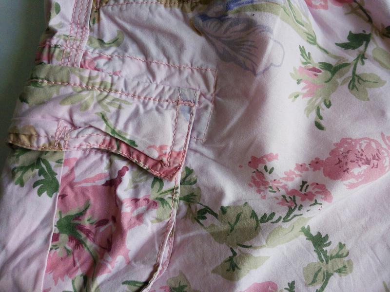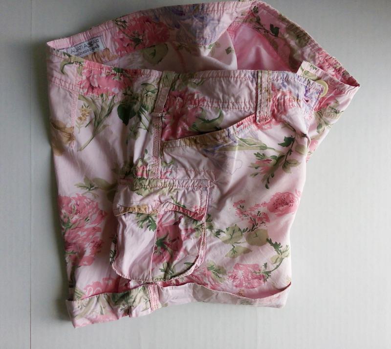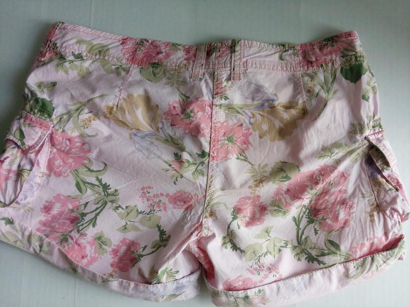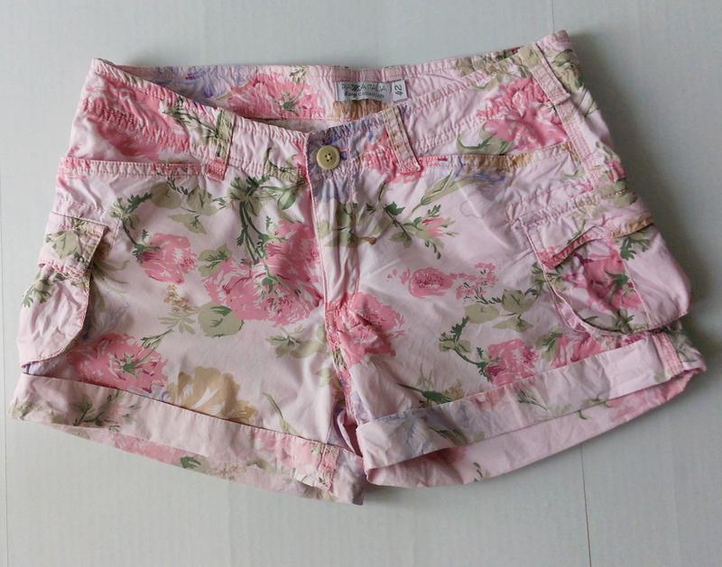 Дитячі фірмові шорти з квітковим принтом бренд Piazza Italia. Дуже приємна забарвлення. Спереду і з боків – кишеньки. Матеріал – котон 100 %. Б/у, але в дуже хорошому стані. Розмір – 42. Точні виміри наступні: Напівобхват талії – 39 див. Напівобхват стегон – 47 див Довжина – 34 див.