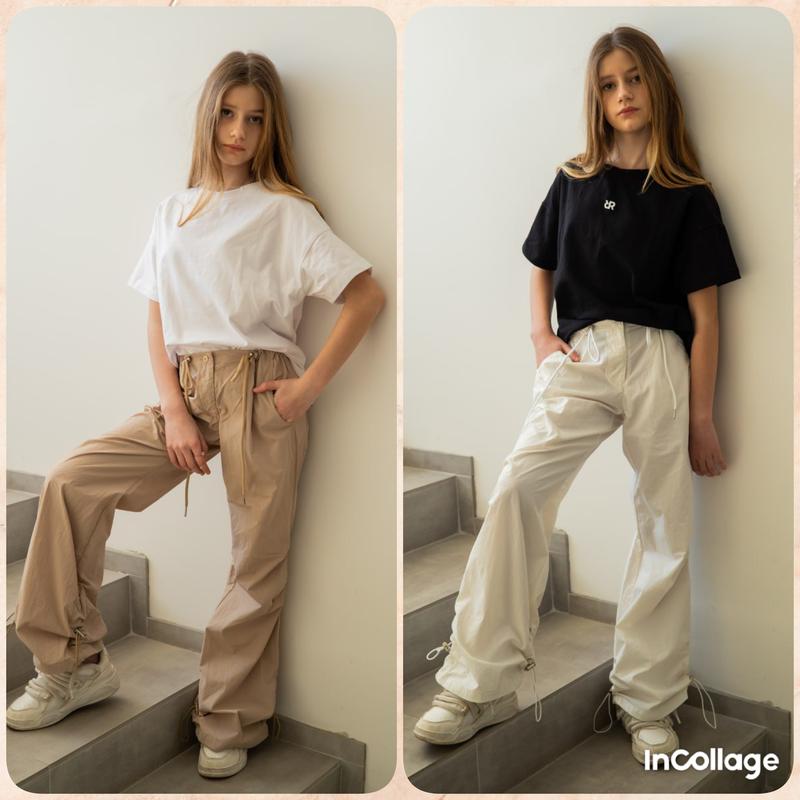 Штани парашути для дівчинки тканина: катон парашут Якість ЛЮКС! Занижена посадка! Об'єм поясу регулюється ВИМІРИ: р.140 довжина/крок/стегно/пояс 87/66/45/33см- р.146 довжина/крок/стегно/пояс 91/70/46/34см- р.152 довжина/крок/стегно/пояс 95/74/49/36см- р.158 довжина/крок/стегно/пояс 98/76/51/39см- р.164 довжина/крок/стегно/пояс 101/79/53/42см- Увага! довжина брюк вказана без зборок, вхаровуйте це при виборі розміру