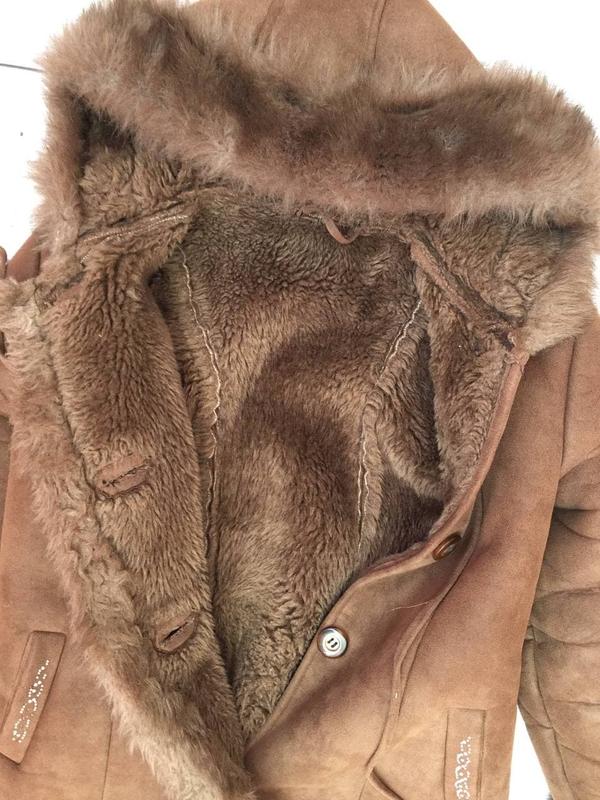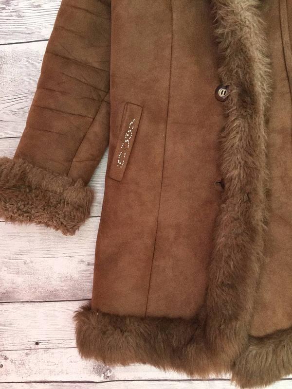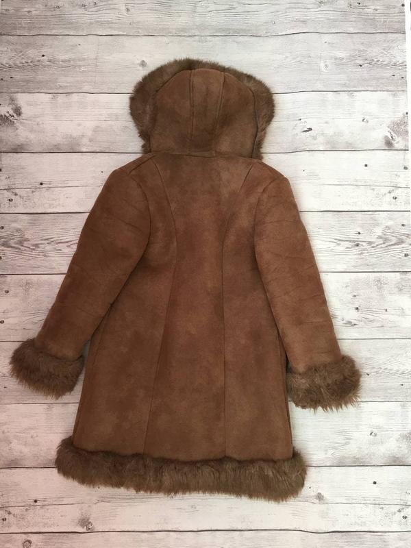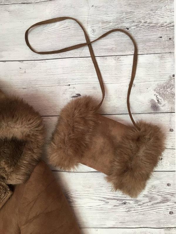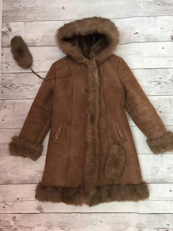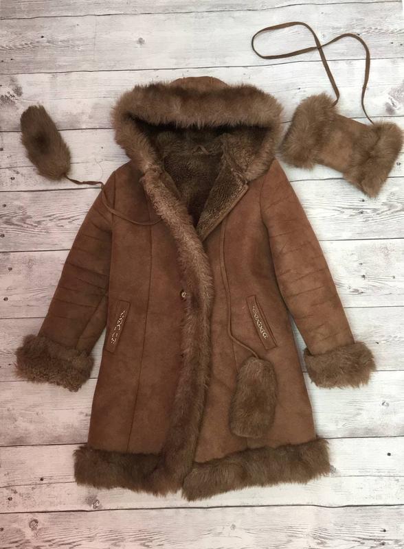 Довга дублянка з рукавицями і капюшоном трапеція еко хутро зимова тепла бумбони