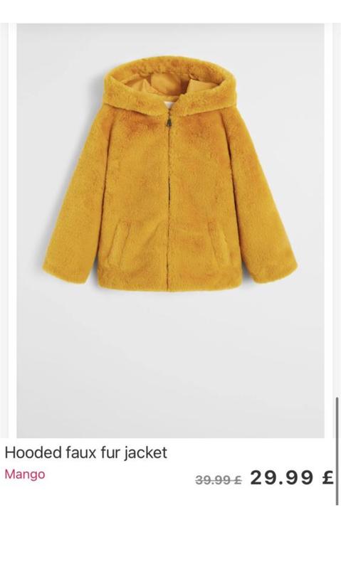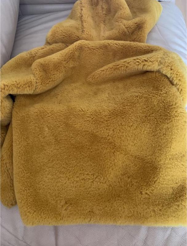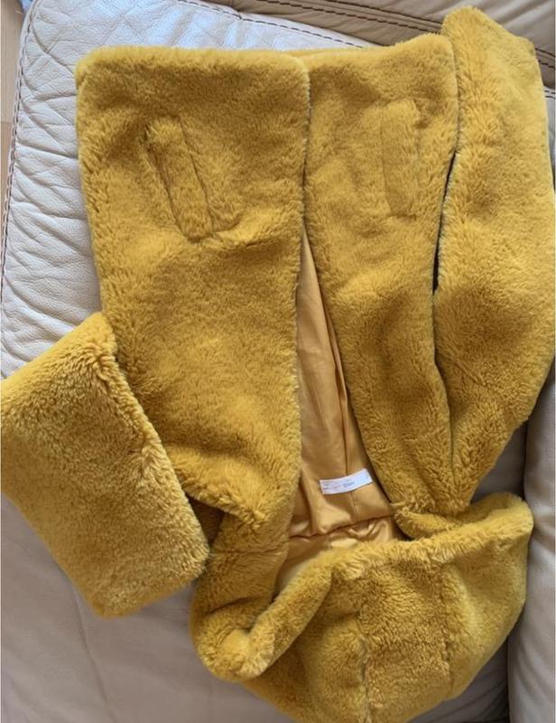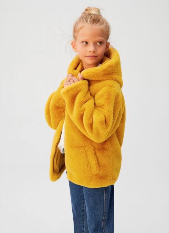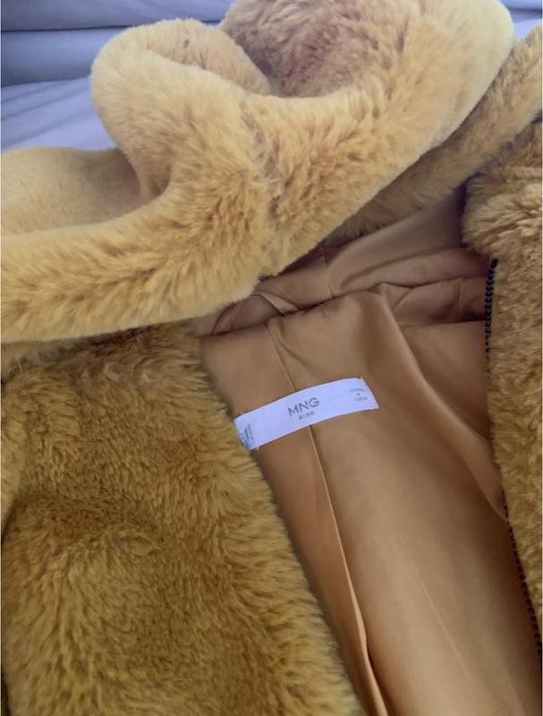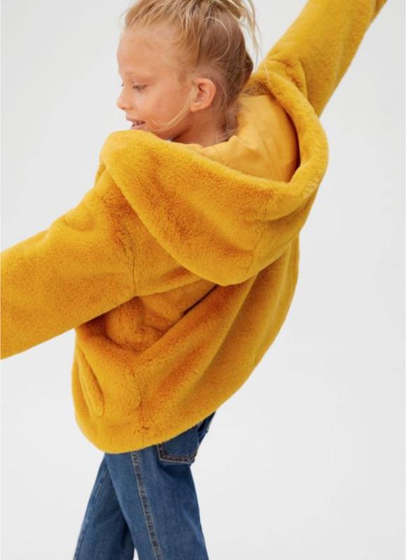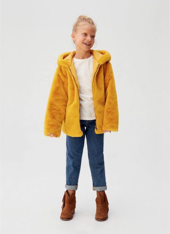 М'яка дитяча шубка Mango 128, гірчичного кольору Довжина 50Рукавів від плеча 47; 56Пог 40Плечі 40Низ 42Є нюанс, підкладка розійшлася швом
