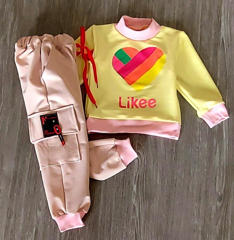 Бомбезний костюмчик для дівчинки "ЛАЙК",яскравий,ніжний і крутий. ЯКІСТЬ дуже гарне. 195 грн 86-92 дл.коф.32/шир.коф.27/дл.рук.29/дл.штан.52/кроків.39