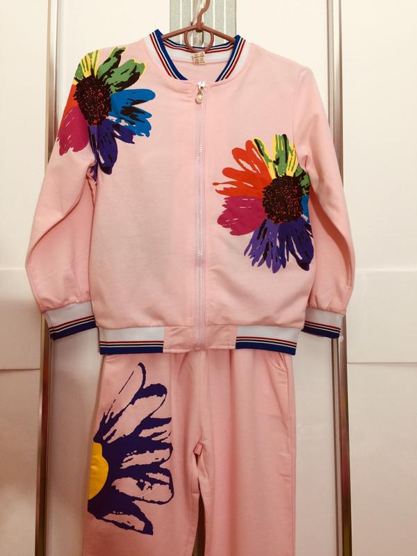Дуже комфортний і затишний спортивний костюм... рожевий щільний Трикотаж двунітка Костюм приємний до тіла не обтягує і не тягнеться Розмір 140 ширина грудей 40см рукав 45см довжина 50 див. рожевий Штани довжина 78см крок 55см. Костюм яскраво-рожевий розмір 146 Костюм жовтий розмір 128
