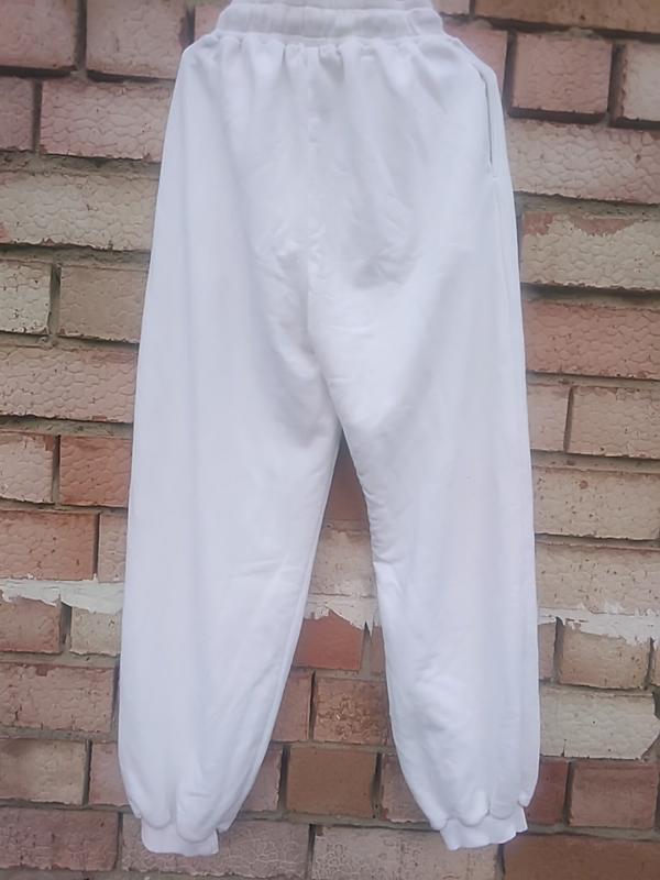 Білі спортивні жіночі штани,трохи утеплені,Розмір М,Довжина штанів від пояса 100 см,пояс на шнурках,тягнеться до 44 см,Штани внизу на резинці,Стан ідеальний