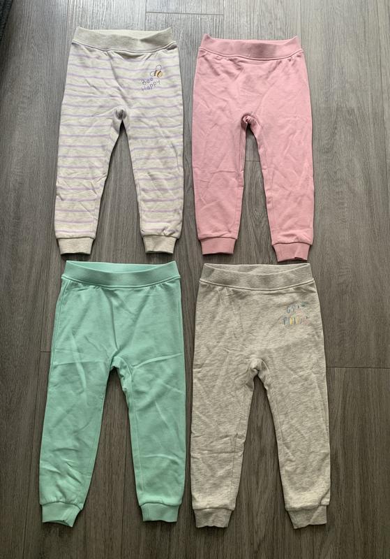 Теплі трикотажні штани Alive на 3-4 роки. Пояс на гумочці, внизу штанини манжет. Дуже м'які, але щільні на осінь, нетонкий літній варіант.Заміри: НОТ-25, довжина збоку — 54, внутр. шов — 35Склад: 100% бавовна