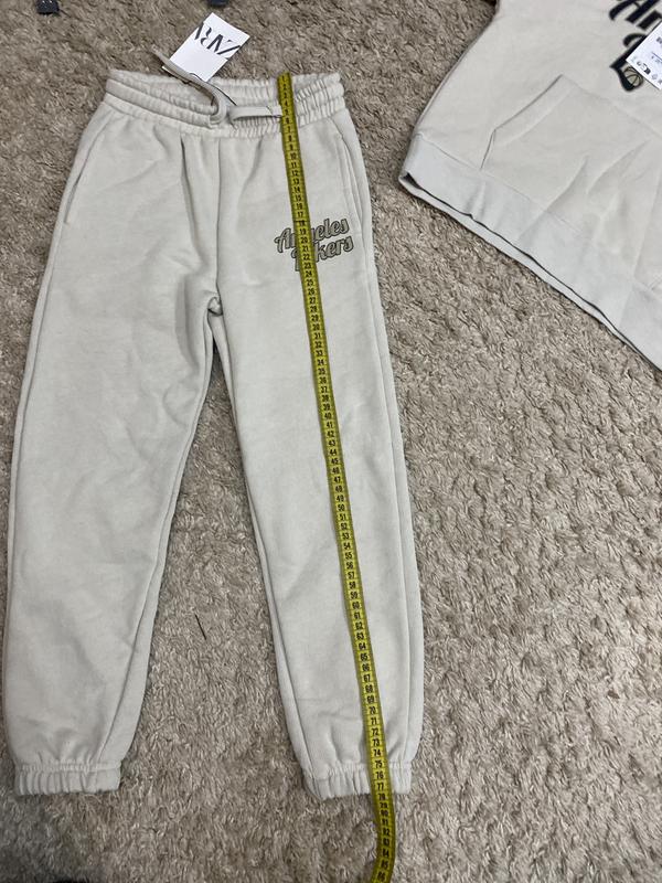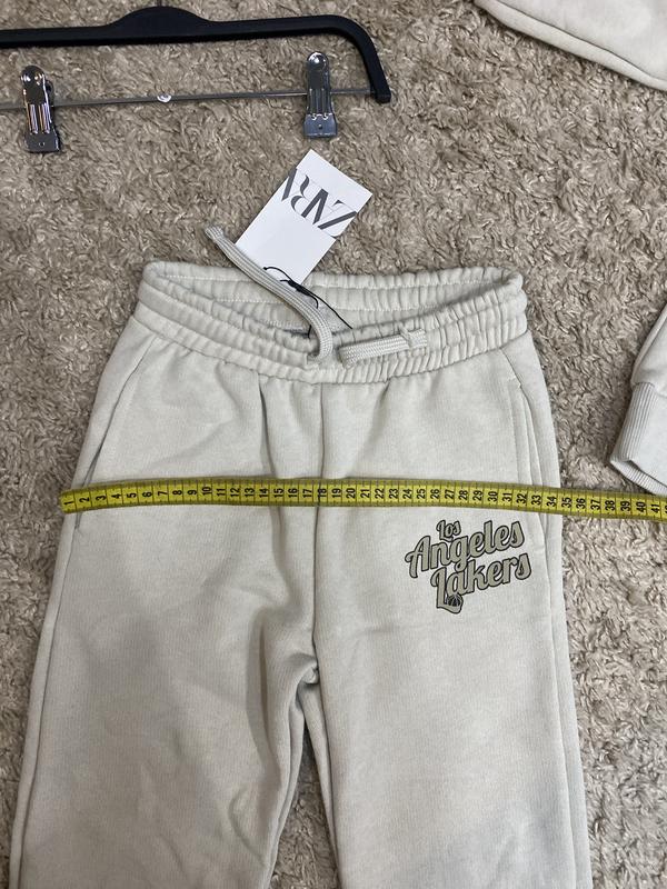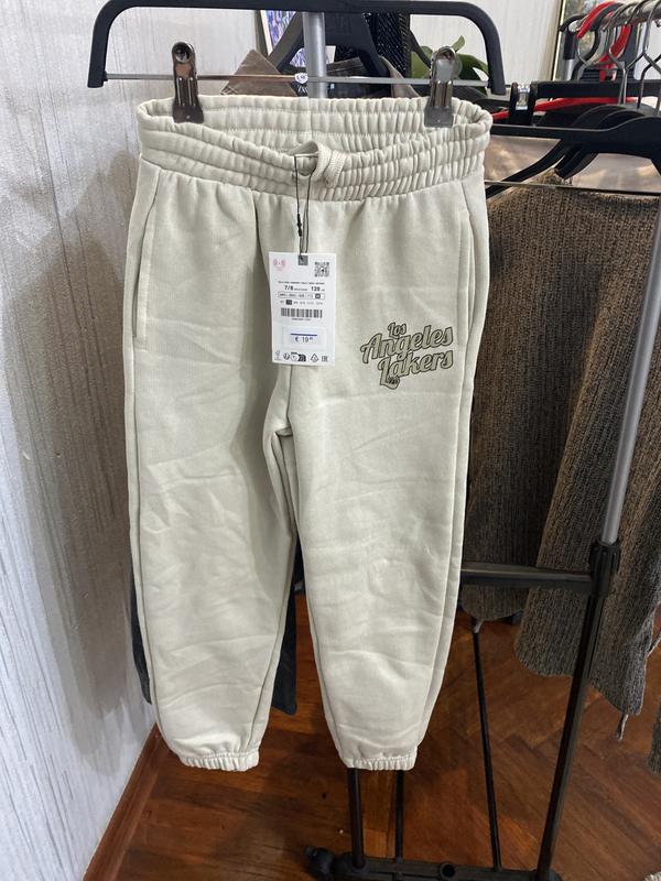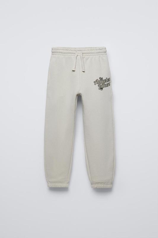 Штани-джогери з еластичним поясом і шнурками для регулювання. Кишені спереду, накладні кишені ззаду, LOS ANGELES LAKERS NBA © та принт ззаду на нозі і еластичні манжети внизу. Колір сірувато бежевий