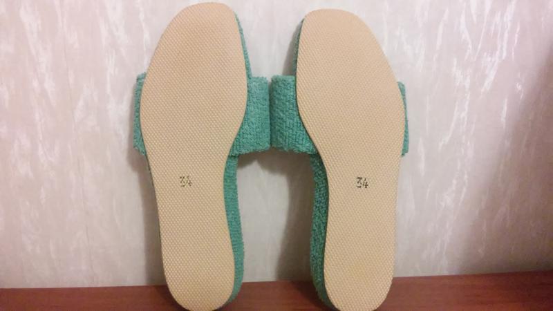 Кімнатні тапочки для дівчинки. На вузьку і середню ніжку. Тканина - махра. Ортопедична устілка. По устілці (від краю до краю) 22 см Одягалися 1 раз.
