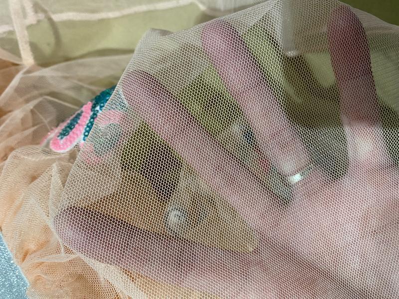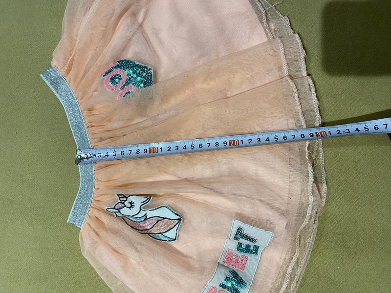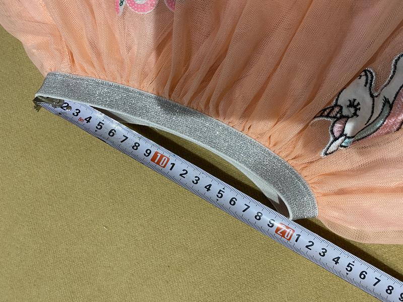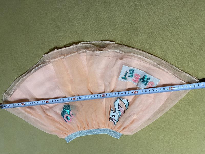 На теле нет, замеры на фото,на талии серебристая резинка средней ширины,фатин из пару слоев на нем вставки эмблемы,подьюбник мягкий коттон как на Майках)из нюансов есть незначительные затяжки и дырочка на фото указано)продаётся так как есть без возврата и притензий)