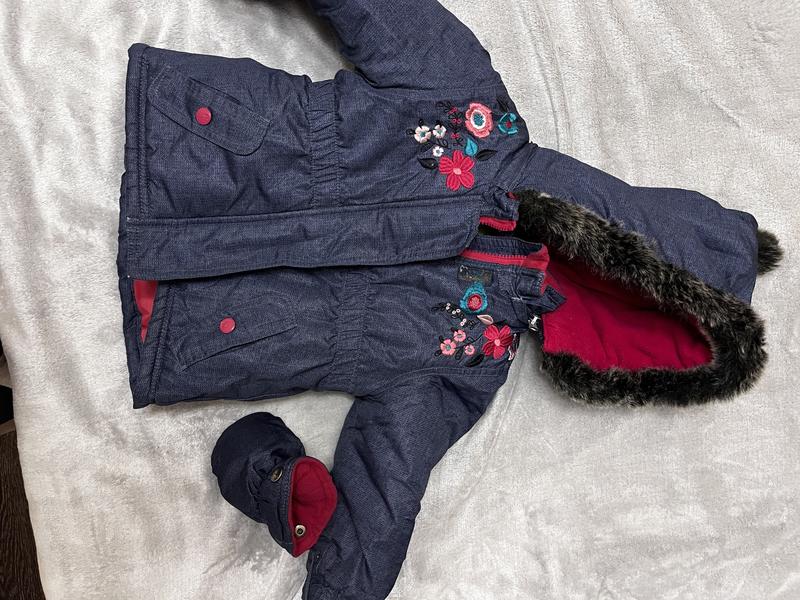 Дуже теплий, рукавиці пристібаються до рукавів, розмір 86-92. Фірмовий, класний. Дитина ніколи не мерзла в ньому, якість тканини на штанях дуже крута, є вставки з міцної тканини на колінах, падаючи, дитина не порве штани.