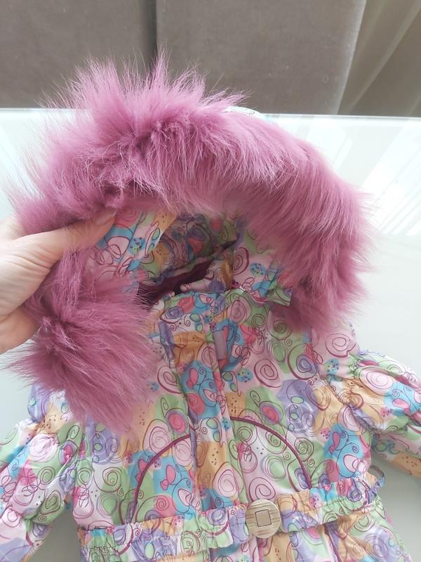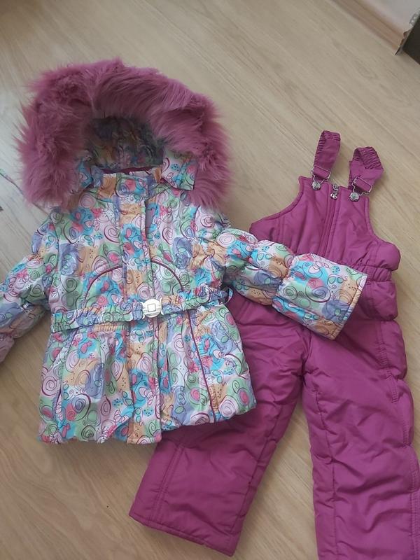 Зимовий комбінезон на дівчинку. Яскравий, теплий, зручний. Хутро натуральне, відстегається, внутрі курточки є додаткова жилетка із овчини, яку можна пристебнути або відстегнути в щалежності від погоди. Штанці абсолютно як нові, майже не носилися. Костюм без нюансів, дир, плям,потертостей немає.
