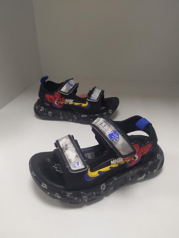 Спортивні босоніжки, сандалі для хлопчика. Обсяг регулюється липучками. Легкі, зручні. Чудова якість! Розміри: Устілка від краю до краю: 26р. 17см. Немає 27р..17.5см. Немає 27р. 18см. Немає 29р. 18.5см. Немає 30р. 19см. Немає 31р. 20см. Пересилаю: Новою поштою. Затишшя. Самовитяг: г Вишгород, магазин СтильНяшки.