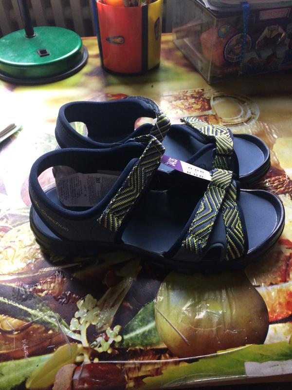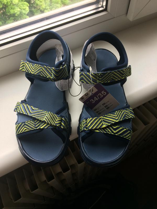 Quechua - французька ТМ, спеціалізується на товарах для туризму та активного відпочинку. підійдуть на вузьку і середню ніжку! - дуже легкі всі 150-200 грам - водостійкі, не ковзають - можна прати в пральній машинці Дитячі босоніжки з зносостійкої, амортизуючою підошвою, протектор 3 мм Піднята носок виконує захисну функцію. Регульовані застібки на липучці добре фіксують ногу. Розраховані на інтенсивну ходьбу по пересіченій місцевості