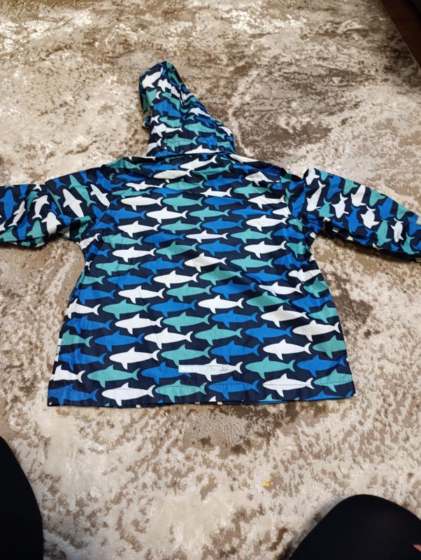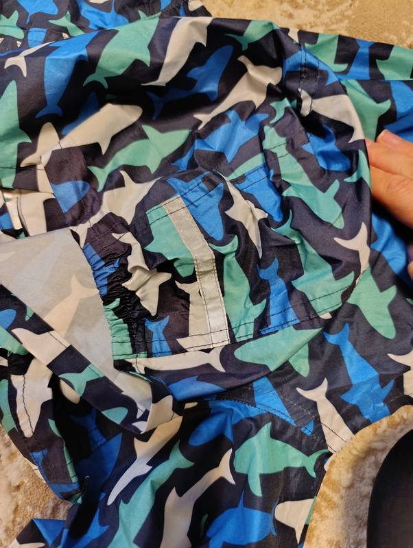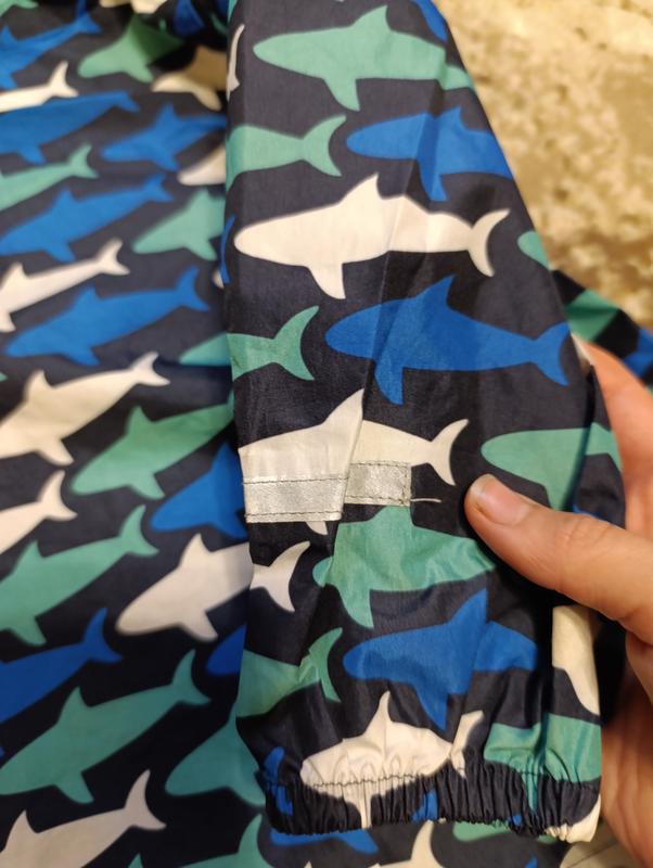 Дощовик, вітрова з світловідбиваючими смужками, капішоні на кнопках, є кишені , на замку, принт акули, без дефектів