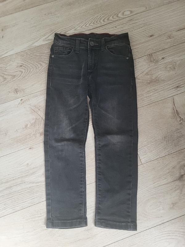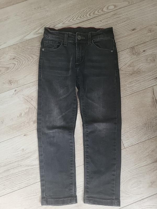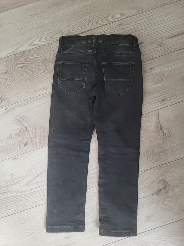чорні джинси для хлопчика з потертостями. Камера погано передає якість. розмір 3-4.довжина 61крок 42в поясі утяжка.