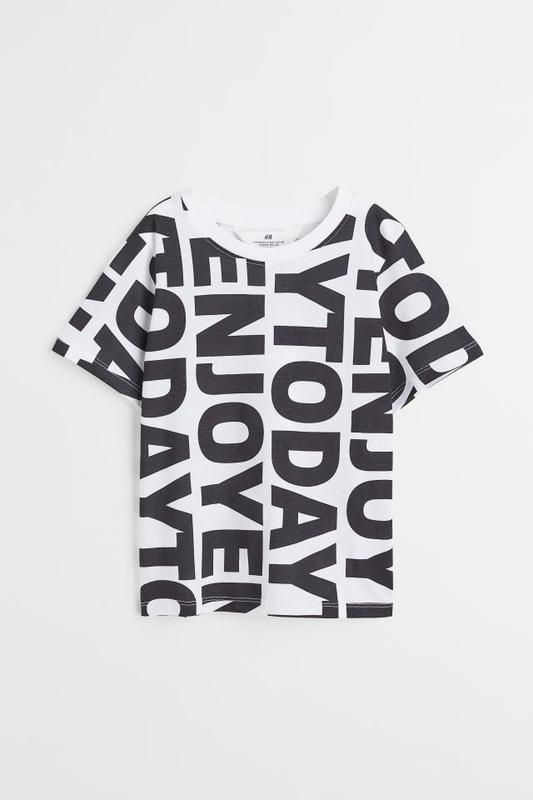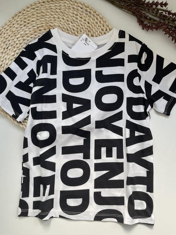 Футболки H&M. Колір білий принт чорні літери. Склад 100% бавовнаВ наявності110/116 см (4-6 років)122/128 см (6-8 років)