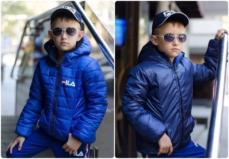DO№648 Двухстороння демісезонна курточка "Fila". Модель унісекс. Тканина - плащівка, наповнювач силікон 150 Двостороння куртка з капюшоном на блискавці, на обох сторонах кармани. Колір - електрик + синій На фото куртка з двох сторін!!! Розміри - 122-128,128-134,134-140,140-146. Заміри в фото. Ціна 735 грн.