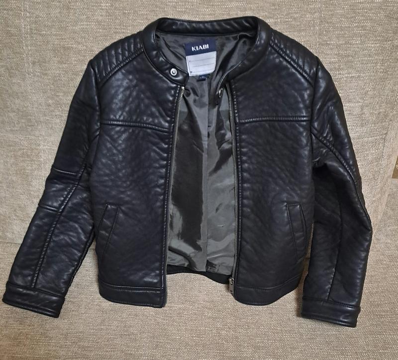 Класнюча шкіряна куртка для хлопчика 6-8 років. Нова, але без бірки( не встигли поносити). Два кармани, рукава на кнопках. Легенька і тепла. Д 45 см Ш 37 см Рукав 47 см