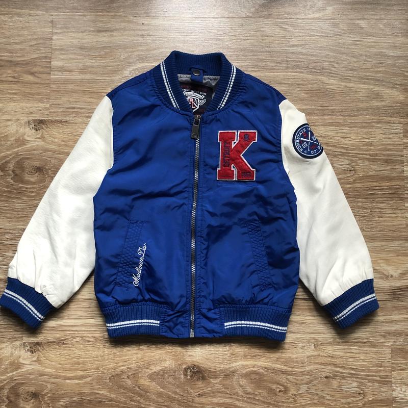 Просто бомбезна весняно-літня куртока, шикарний синій колір і білі рукави із еко шкіри, виглядає дуже стильно! У цій курточці ваш красунчик буде виділятись серед усіх однолітків)) курточка в прекрасному стані, без дефектів чи протертостій, рукави біленькі, чистенькі. Заміри довжина по спинці 46 див., грудка 39 см, рукав-40 см..