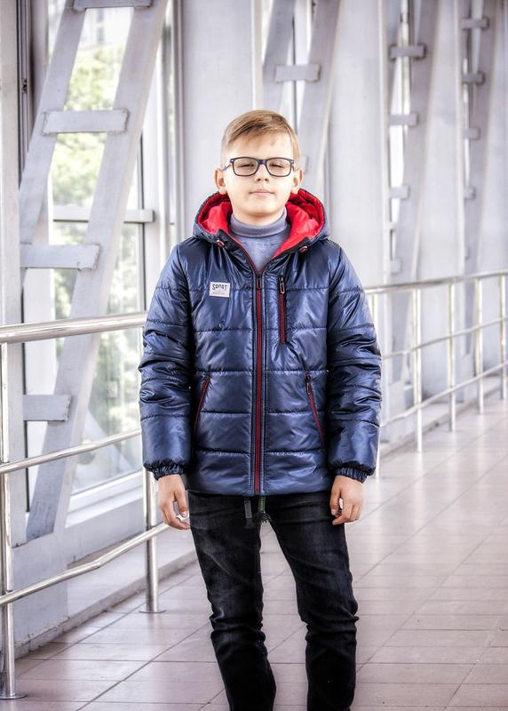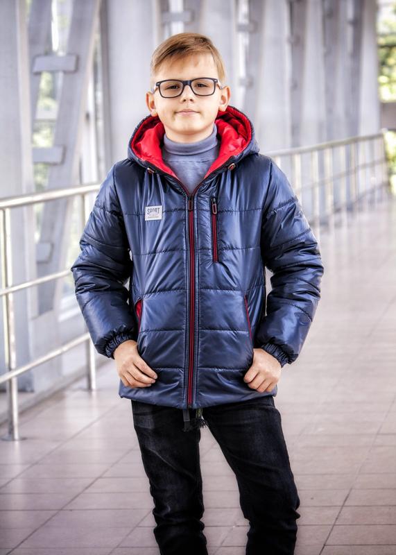 Демісезонна куртка для хлопчика виконана з якісної модної плащової тканини з подвійним покриттям. Декорована сучасною контрастною фурнітурою та відбиваючою нашивкою.