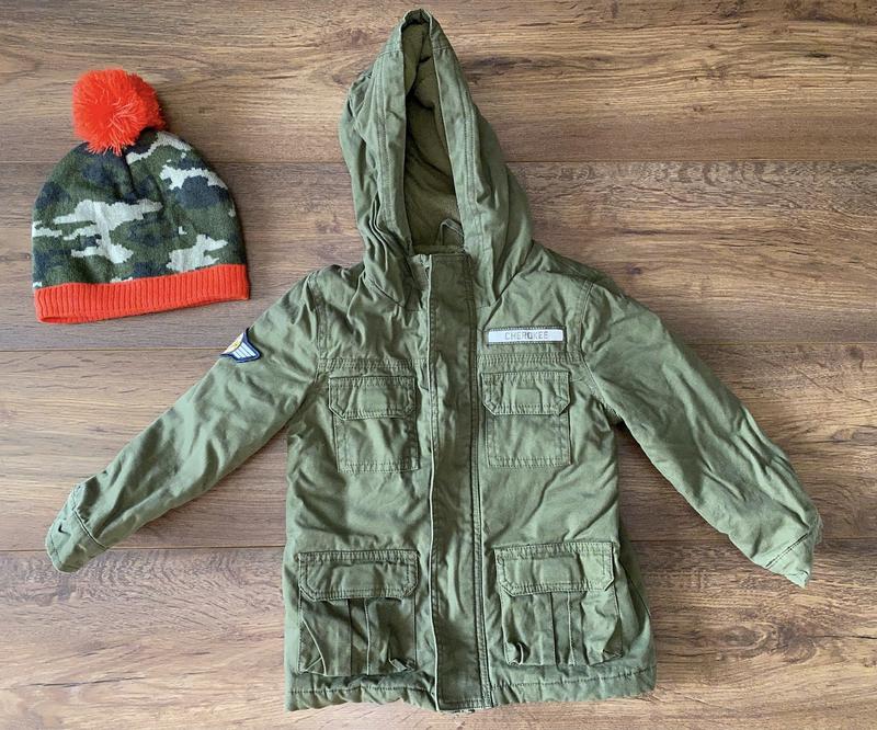 Продам парку на зріст 92-98 см,є один нюанс на рукаві,при носінні не дуже видно.Шапочка в подарунок.