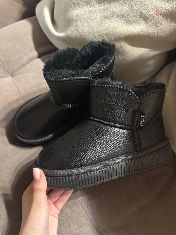 Дитячі чорні снігові черевики уггі з якісної штучної структурованої шкіри,мега теплі та зручні,дуже практичні,круглий носок,гумова підошва,на підошві розмір 34,іде на розмір 30,устілка 19,5 см.Підійдуть як для хлопчиків так і для дівчат