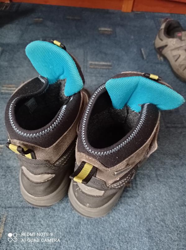 В дуже гарному стані.Все як на фото.Легенькі та теплі,не відклеєні!!Є незначні царапини,але повністю цілі.Натуральна шкіра навиворіть та водонепроникна мембрана.33р