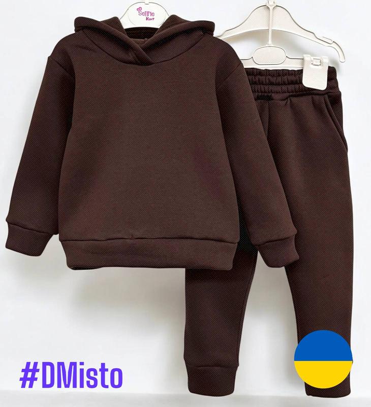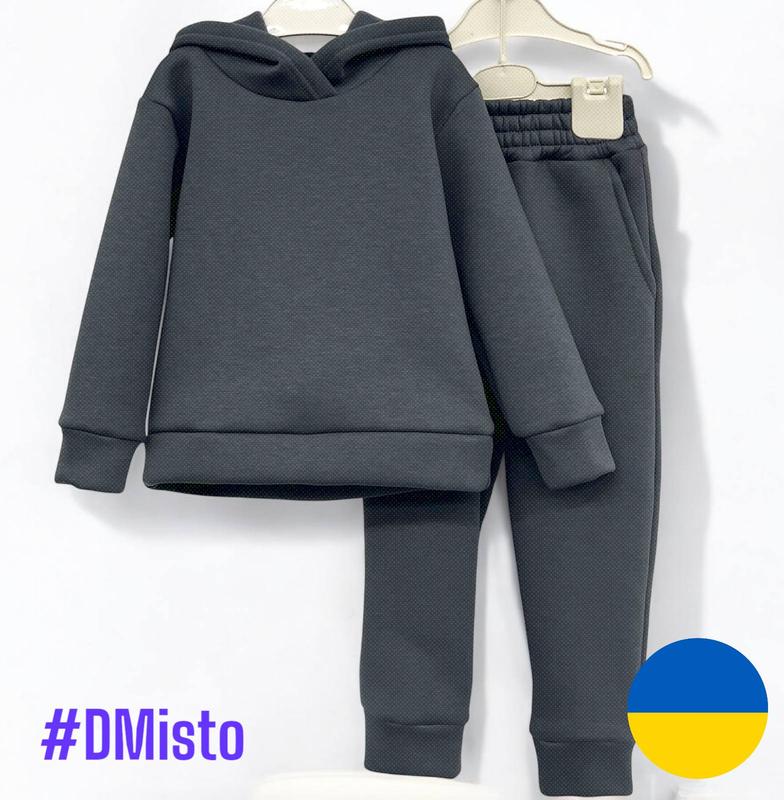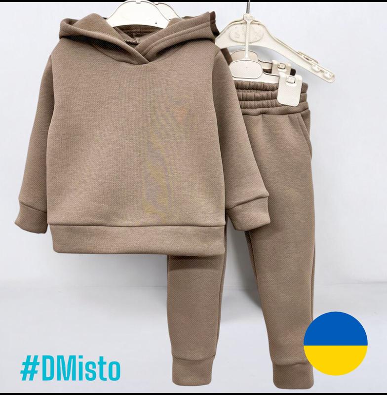 кс23тр, Теплий дитячий спортивний костюм пошитий з високоякісного трикотажного полотна тринитка з начосом. Комплект складається з худі та штанів, обидва елементи мають манжети з основного полотна. Костюм ідеально підходить для холодної пори року. Ціна залежить від вибраного розміру.