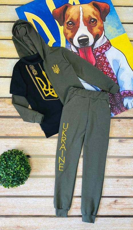 Бобка з капюшоном на замку , штани з карманами з знизу на манжеті (резинка) та футболка вишита
