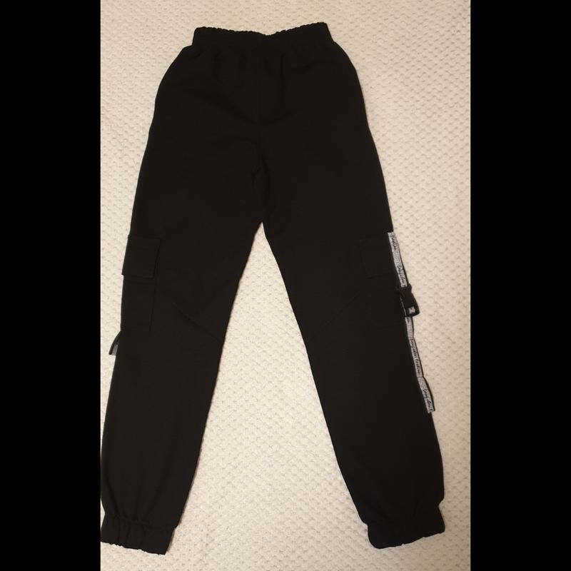 Стильні спортивні джогери з боковими кишенями (загалом 4 кишені), зі вставками, знизу на резинці. Без утеплювача. Стан новий, без етикеток.