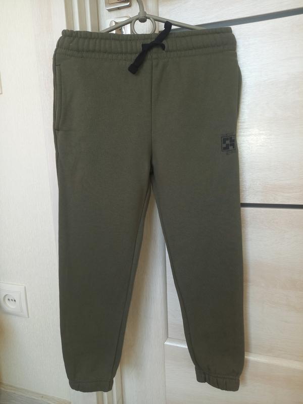 Теплі демісезонні осінні весняні спортивні штани зелені хакі на флісі f&f для хлопчика 6-7...