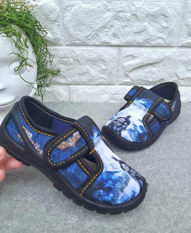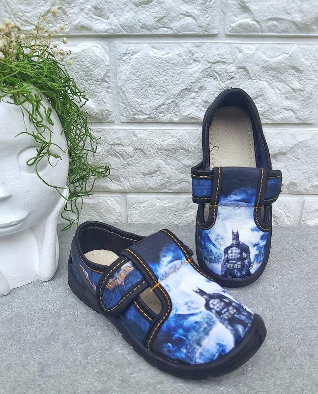 Тапочки Шалунішка з бетменом, верх текстиль, устілка шкіряна з супінатором, захищений носик, підходять на високий підйом, підошва піна, дуже легенькі.