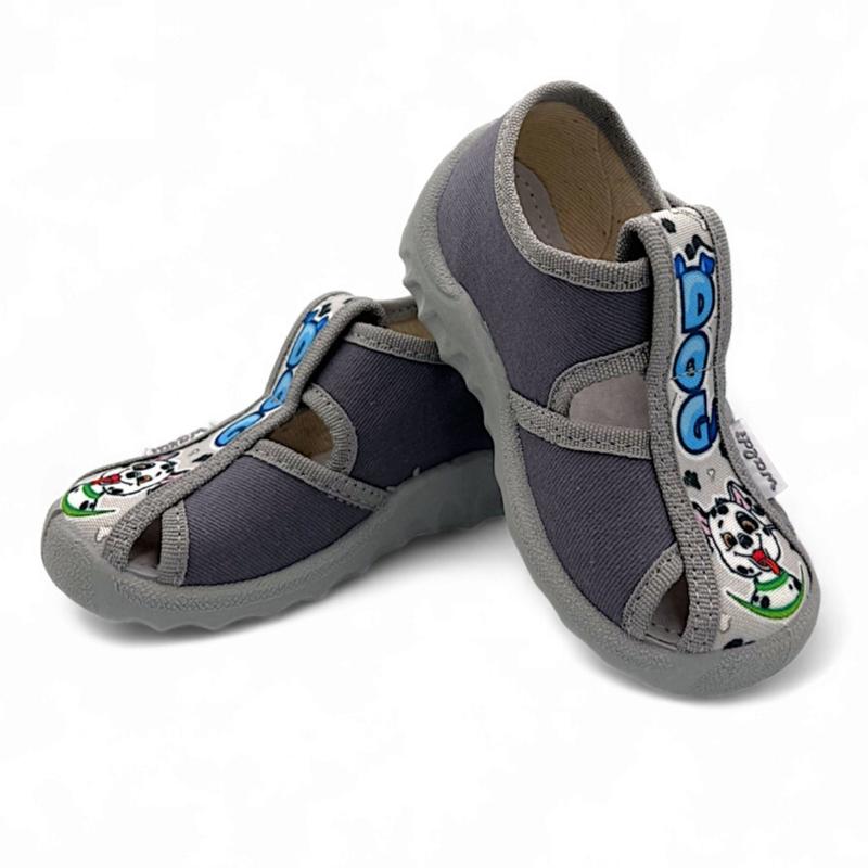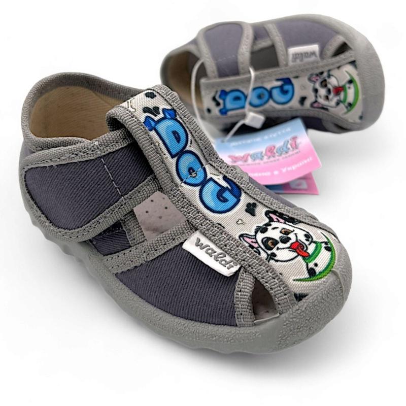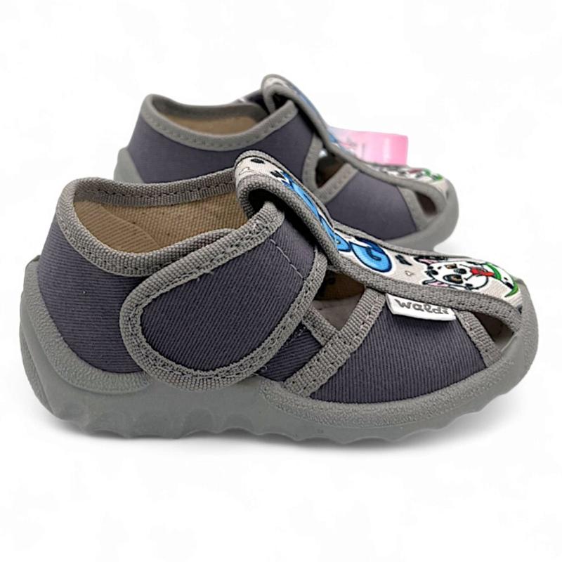 Тапочки для хлопчика Waldi.Комфортні, якісні капці, відмінно підійдуть дитині в садок, а також для повсякденних прогулянок. Матеріал підошви – ПВХ. Устілка шкіряна. Фіксація на ніжці на липучку.