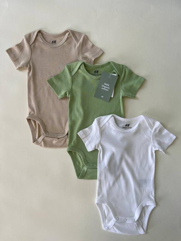 Боді з короткими рукавами з м'якого бавовняного трикотажу та застібками на промежині. Вузька окантовка навколо