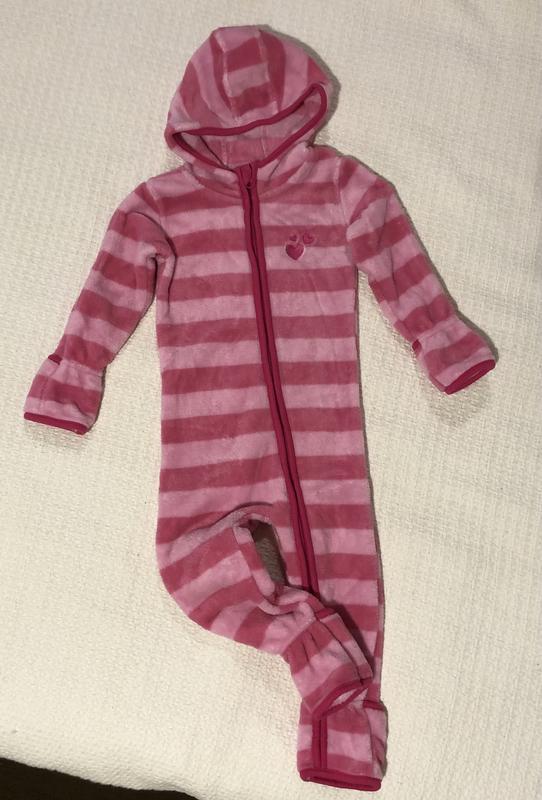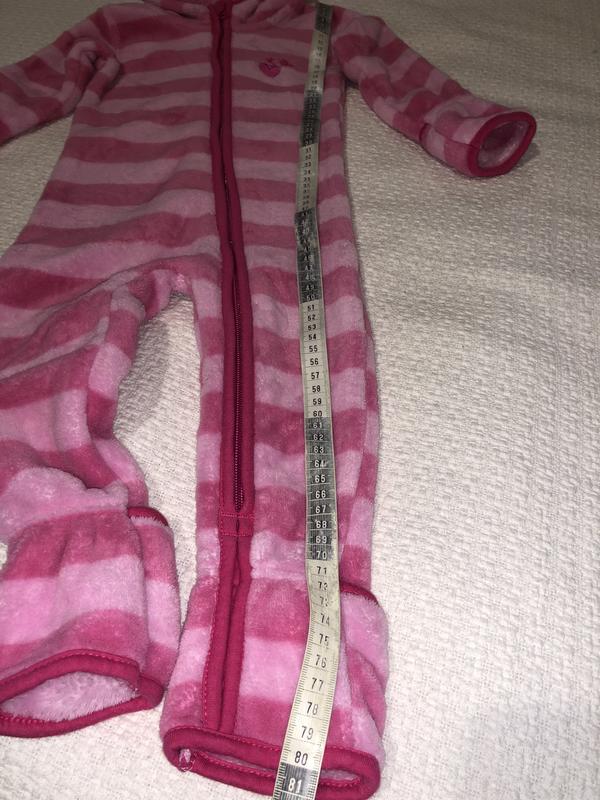 В ідеальному стані, ручки та ніжки ховаються.Теплий флісовий чоловічок, ідеально, як термо білизна. Розмір на бірці 74-80.Заміри на фото, фірма більшемірить.