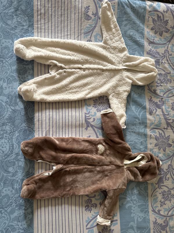 2 теплих чоловічка ( 1 білого кольору інший коричневого кольору на 3 фото зі спалахом, щоб більш передати колір) . Чоловічки розміру 68, підійдуть від 1-4 місяців як раз на осінь/весну, так як в середині з утепленням, тако ж зручно вдягати під більш теплий чоловічок. Ціна за 2 штуки вказана, якщо надсилали шафа доставкою +30 грн до ціни.