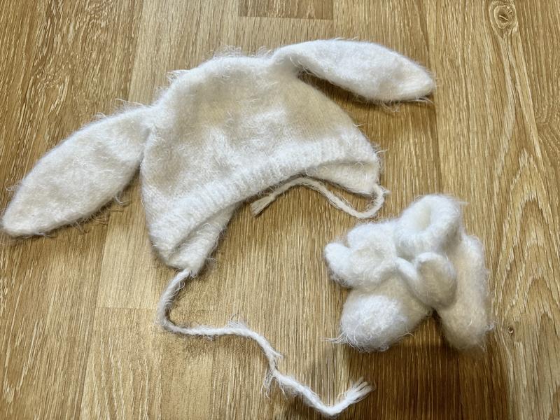 Класний і дуже милий дитячий набір із шапочки з вушками та носочків Зайка.