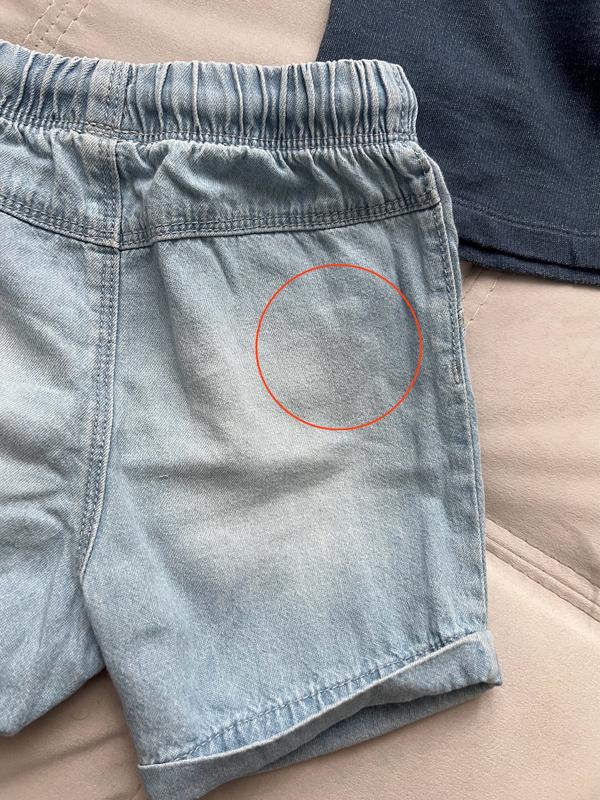 Комплект шорти і футболочка розмір 74 (9-12міс) Джинсові шорти тоненькі і легенькі, ідеальні на літо. На шортиках є ледь помітні плямки-крапочки.