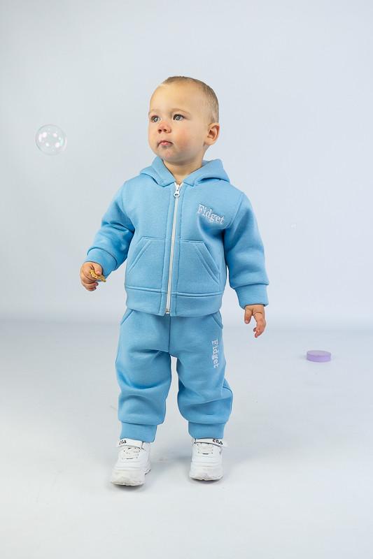 Полотно: тринитка Заміри: в описі На зріст: 80-98 см При настанні холодів в дитячому гардеробі обов'язково повинен бути теплий костюм. Він практичний та зручний для повсякденних прогулянок і активних ігор в прохолодну погоду. пропонує вашому чаду одягнутися в наш яскравий і модний костюмчик на товстому начосі, в якому буде зручно і комфортно. Костюм складається з курточки з капюшоном і штанців на манжетах. Застібкою на курточці служить блискавка, а елементом декору - вишитий напис на лівій стороні полички та штанів. Напис «Fidget» перекладається як «Непосида», що стане відмінною характеристикою активній дитині. Костюм виготовлений з теплого і м'якого трикотажного полотна - тринитка. Це щільний матеріал, основою якого є бавовна. Дане полотно стійке до ковтунів, розтягування матеріалу, служить тривалий час і ніяк не змінює форму. Це натуральна тканина. Вона пропускає повітря, в результаті чого шкіра може дихати, а завдяки начісуванню тримати тепло. Тринитка приємна до тіла і відчуттів.