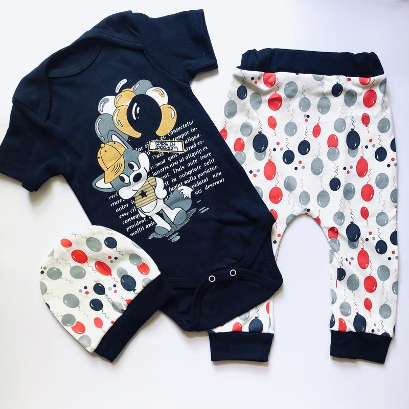 Комплект складається з боді з коротким рукавчиків, штанців і шапочки. Повністю з натуральної бавовни, не містить синтетики. Якісний і яскравий принт мишки і повітряних кульок, добре тримається після прання. Порадує як вас, так і не залишить байдужим вашого малюка. Склад: бавовна 100% Виробник: Туреччина Розміри: 9, 12, 18 місяців Доставка: Нова пошта більше на the_little_one_baby