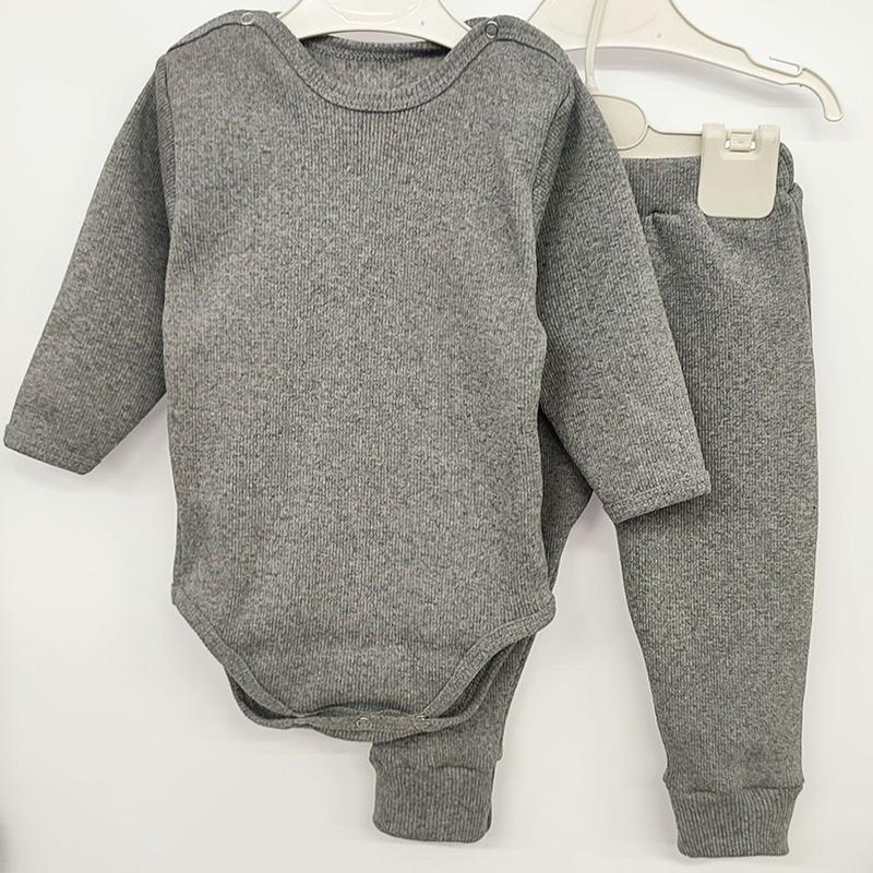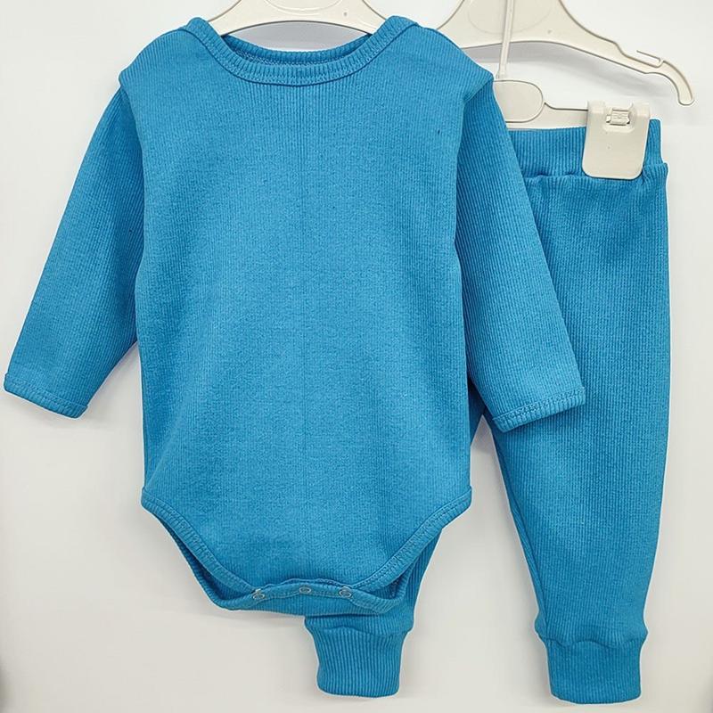 якп49рн, Комплект ясельний боді та штанці. Боді застібається на кнопки на плечиках та внизу. Штанці на манжетах та на м'якій поясній резинці. Полотно рубчик однотон з начьосом. Ціна залежить від розміру.