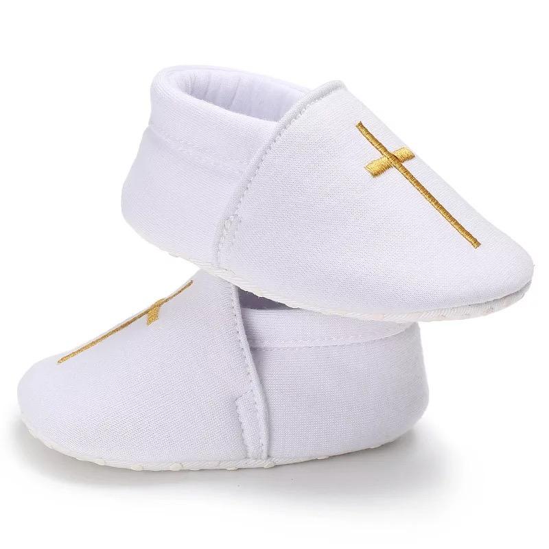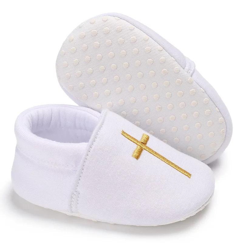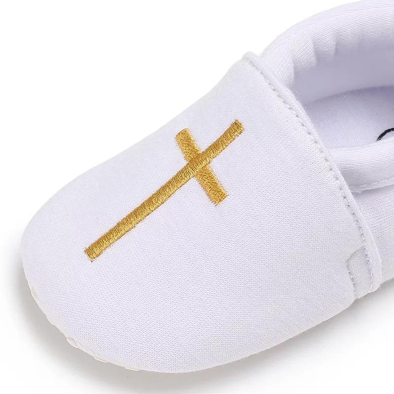 Текстильні білі пінетки мокси для таїнства хрещення, прикрашені витонченими вишитими хрестиками. Спеціально для хрещення.Розмір:✅11 см. (0-6 міс.)Матеріал: бавовнаПідошва: текстиль, антиковзаюче покриття