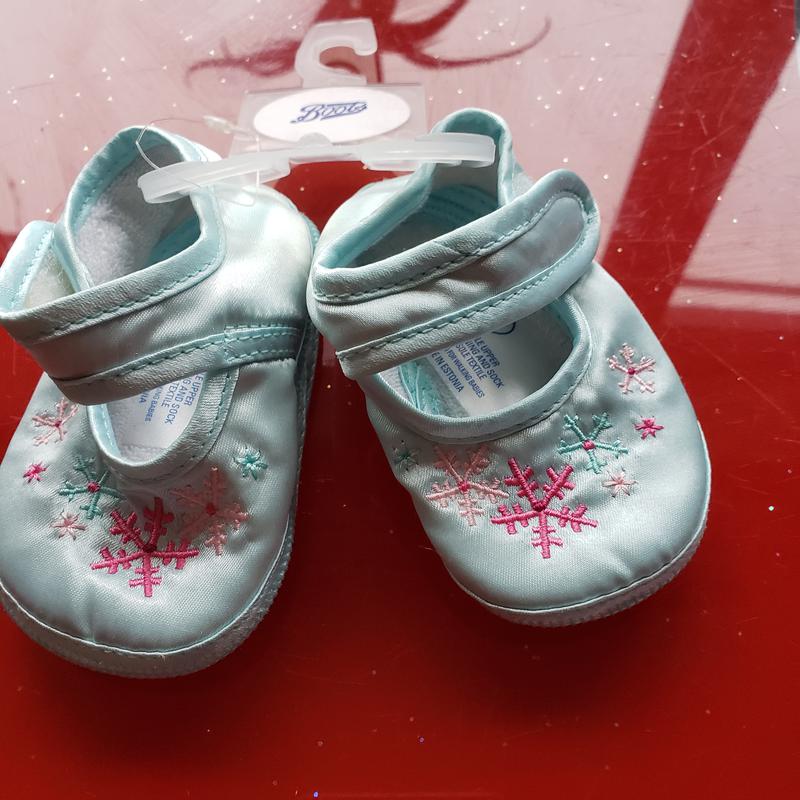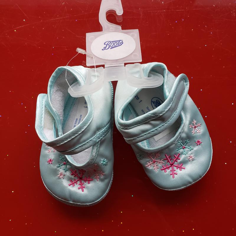 Пінетки, топіки, перша взуття для дівчинки, текстильні ошатні туфельки. Для дівчинки 3-6-9 місяців, мірки на фото. Блакитні з вишитими сгежинками. Зовні тканина гладка, блискуча, схожа на атлас Нові з біркою, добре на подарунок, з нагоди народження або Новий рік, сморины. Відмінний костюм на Новий рік, для новорічної або різдвяної фотосесії, просто для підняття настрою. На одному з туфельки є трохи забруднення, потрібно застрягти, це враховано в ціні.