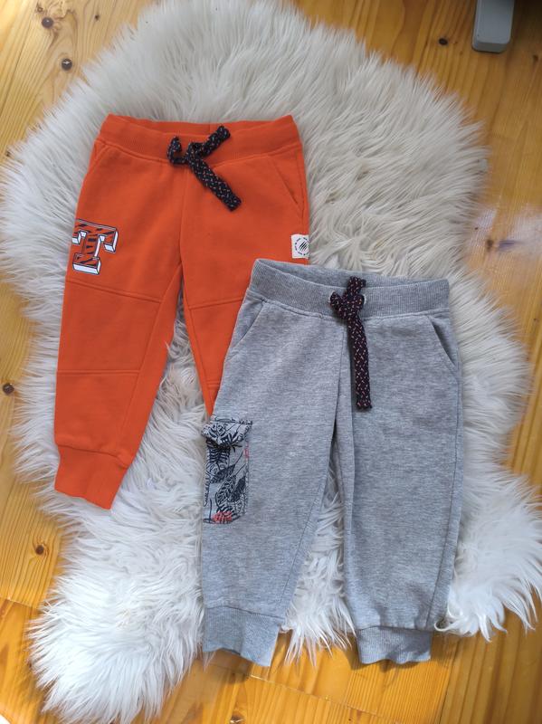 Штанці в ідеальному стані, носились мало Мають легке утеплення Помаранчеві вдівались лише раз, але є малопомітна крапочка (видно на фото), можна відіпрати Ціна за дві пари 200 грн Довжина 48 см Пояс 25 см регулюється Будуть до 3х років