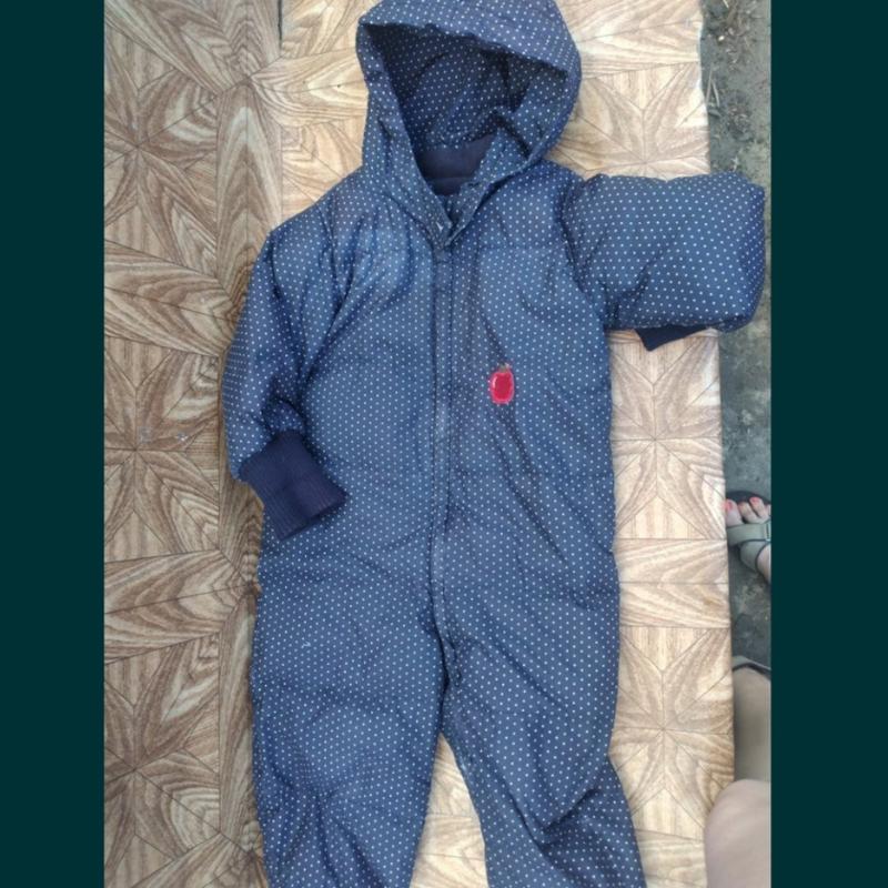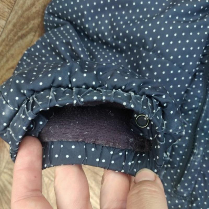 Зимний пуховой комбинезон GAP , внутри флис, цена соответствует состоянию, потертости между ножками, на манжетах - но на теплоту не влияет. Теплый и лёгкий, цвет темно синий в белый мелкий горошек, размер 18-24 мес