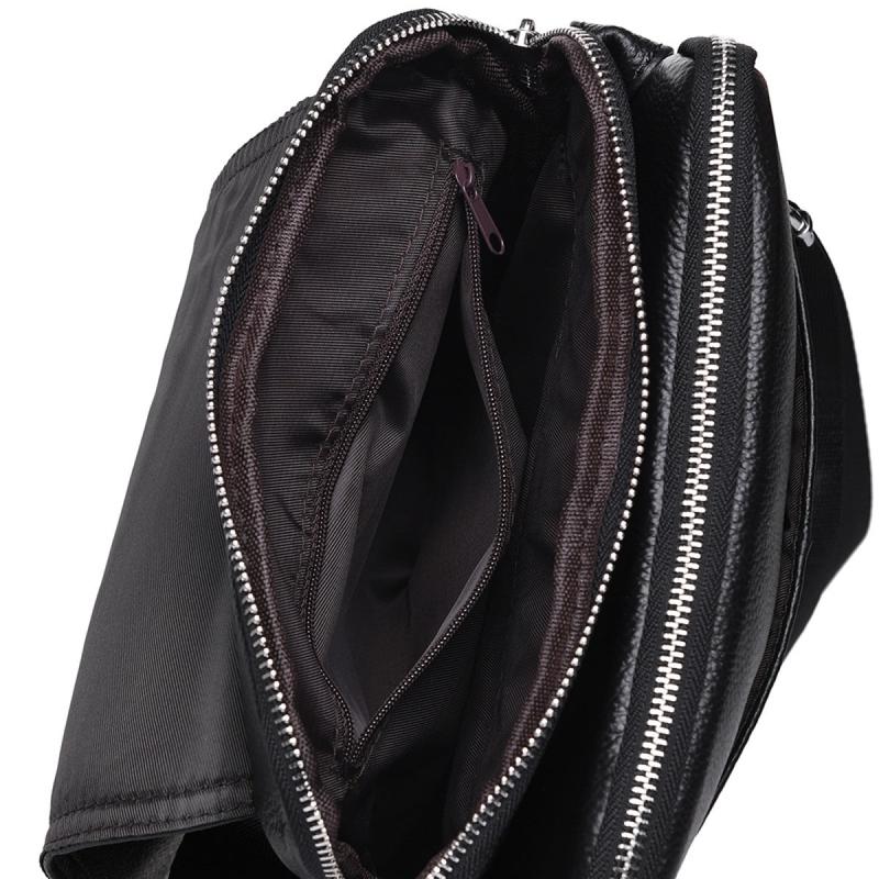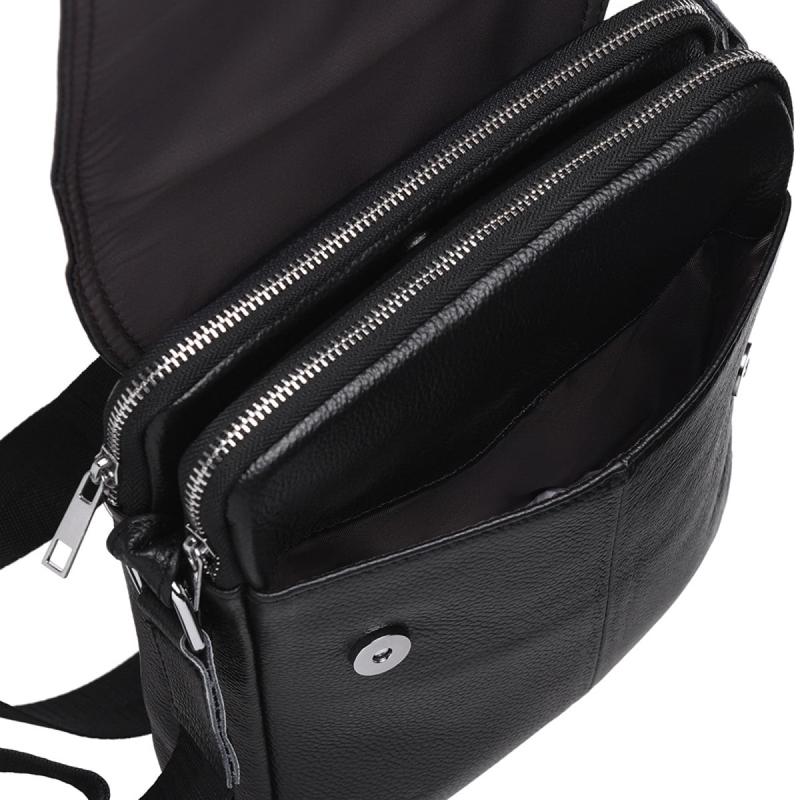 Нова колекція італійська шкіряна сумочка кросбоді на 3 відділення чорна