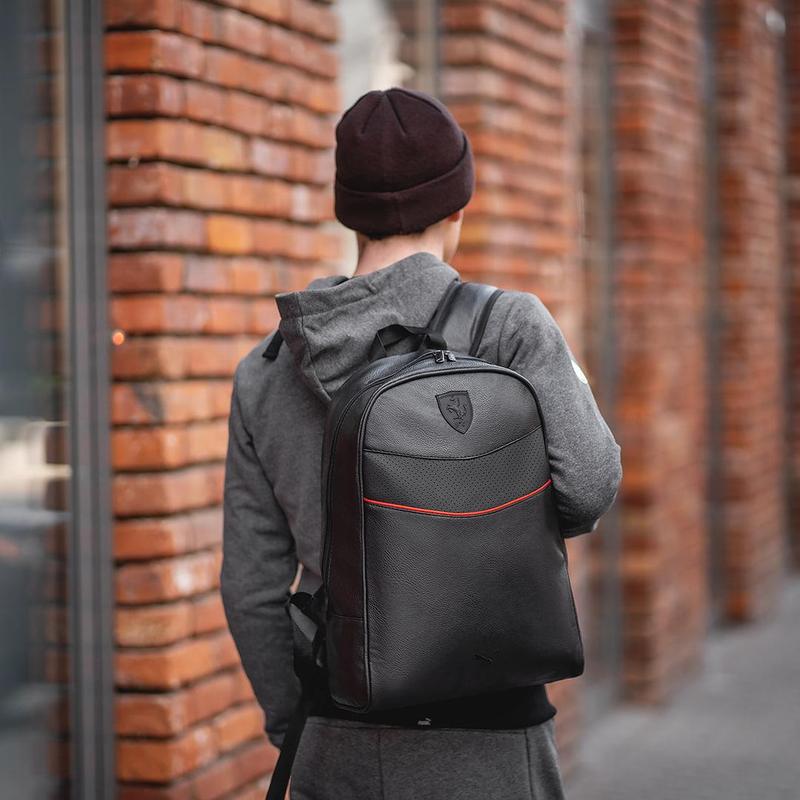 Міський чорний рюкзак Puma Ferrari Шкіра PU. Спортивний рюкзак. Відмінно підійде як для тренувань, навчання, подорожей. Характеристика: - У головному відділенні велика кишеня під спинкою; - Зручні широкі лямки, регульовані за довжиною; - М'яка ущільнена спинка; - Ущільнене дно рюкзака; - Ручка для перенесення в руці; - Якісний логотип популярного бренду. Матеріал: Шкіра PU Розмір: 42x30x15 Колір: чорний