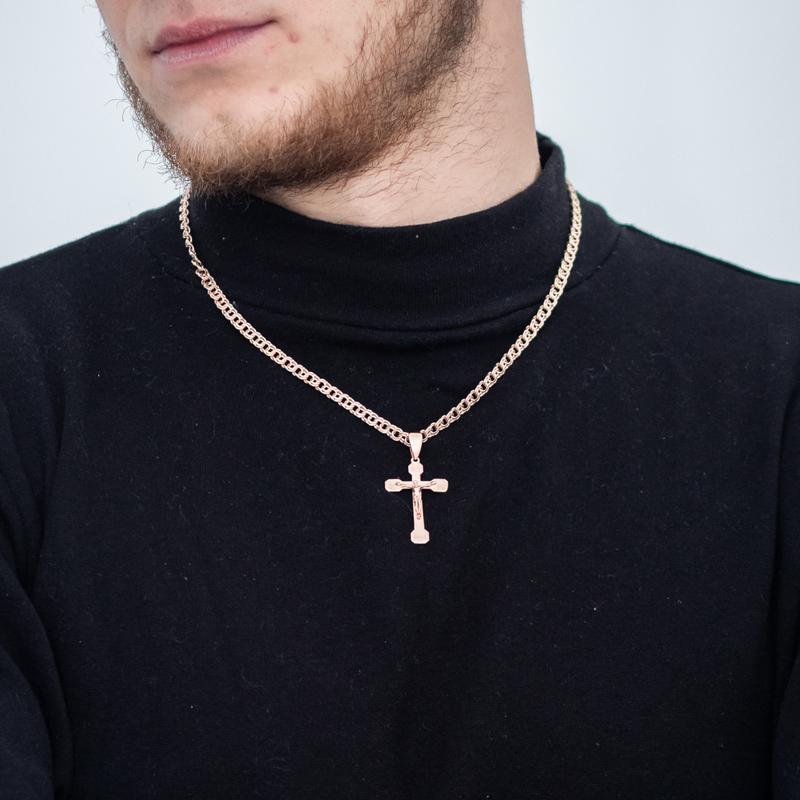 Комплект срібний хрестик і срібний ланцюжок у позолоті